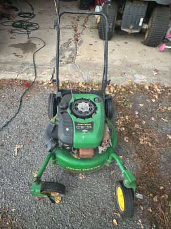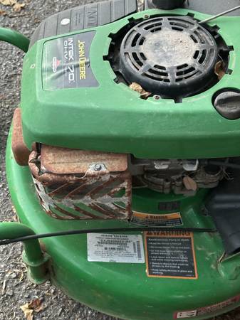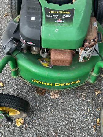 I have a John Deere self propelled push mower for sale. You often don’t see many of these. The frame is in great shape. It’s has some rust as far and the valve cover and the exhaust it will need a carb clean and air filter minor maintenance and also the pull rope is stuck other that it does have spark asking $125 or shoot me an offer